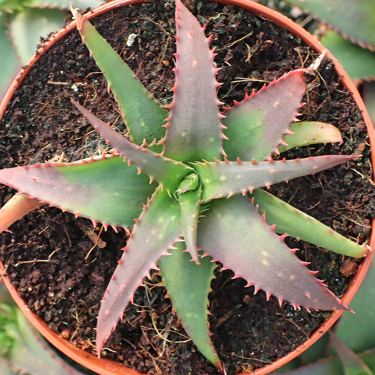 There are over 500 species of Aloe native to Southern and Eastern Africa and many more cultivated hybrids. They are well adapted to life in arid, full sun habitats such as cliffside crevices. Simulate these conditions with bright light, rapid drainage, and deep but infrequent water. Fortunately, Aloe are very forgiving growers and are a great starting place for those new to succulents. For more information, explore these succulent resources: