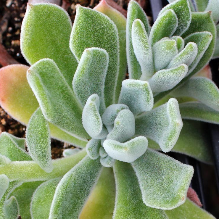 - Foliage: Leaves can be velvety, fuzzy, smooth, or crinkly and are often coated with a powdery layer that gives them a soft, glaucous look. These thick, fleshy leaves store water and sustain the plant through periods of drought.