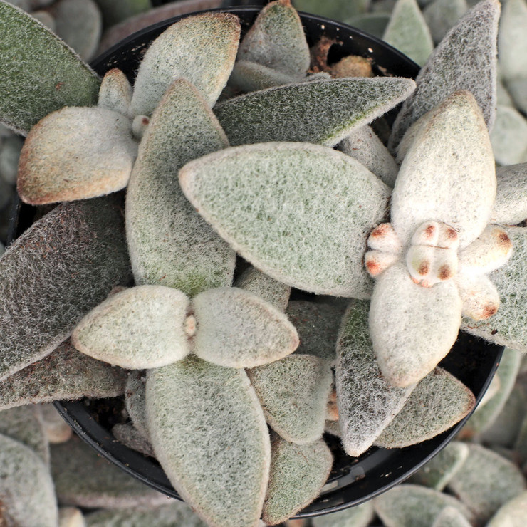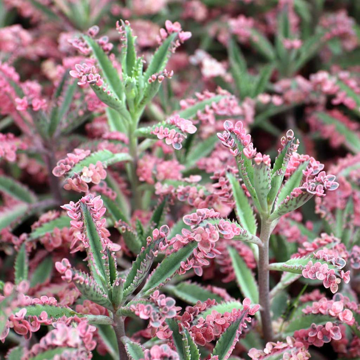 Kalanchoe is a quirky, varied group of plants encompassing about 150 species, primarily from Madagascar. Compared to most tender succulents, these plants can tolerate a bit more water, less sun, and higher soil organic matter content. Overall, they are very forgiving growers and will thrive in warm climates or indoors near a sunny window.