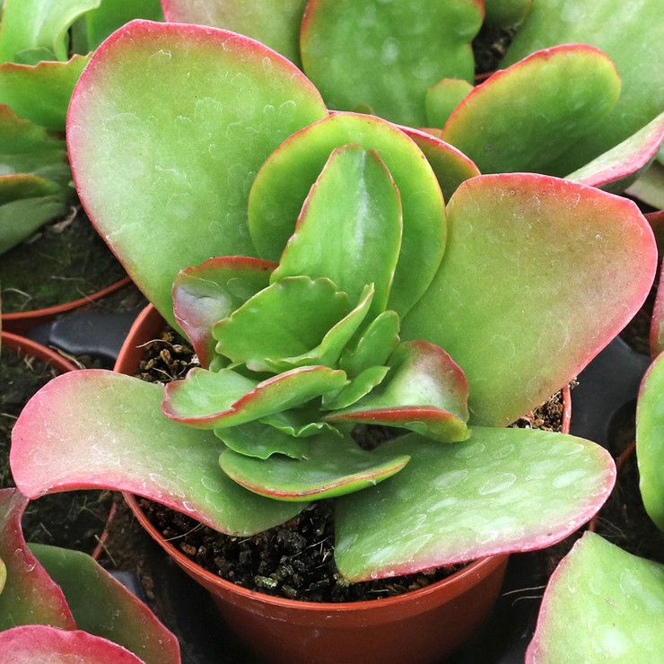 Kalanchoe (kal-un-KO-ee) is a group of exotic succulents prized for their unusual foliage and flowers. They are reliably easy to grow and can be almost alien in appearance. Look for large, embellished leaves that can be toothed, wavy, or lined with new plantlets.