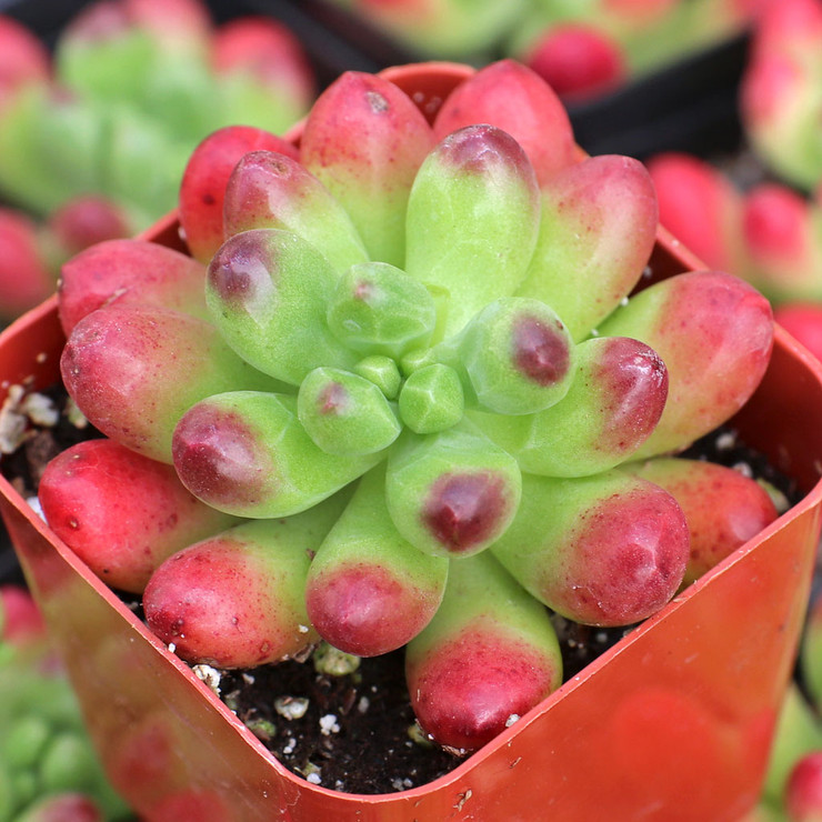 Tender Sedum are native to Latin America and are sometimes referred to as “Mexican Stonecrops”. They propagate and hybridize easily and in this category we also list their close relatives, Graptosedum and Cremnosedum. Tender Sedum can resemble the hardy, Eurasian Sedum, however, being intolerant of frost, the tender varieties are better suited to growing in indoor containers.